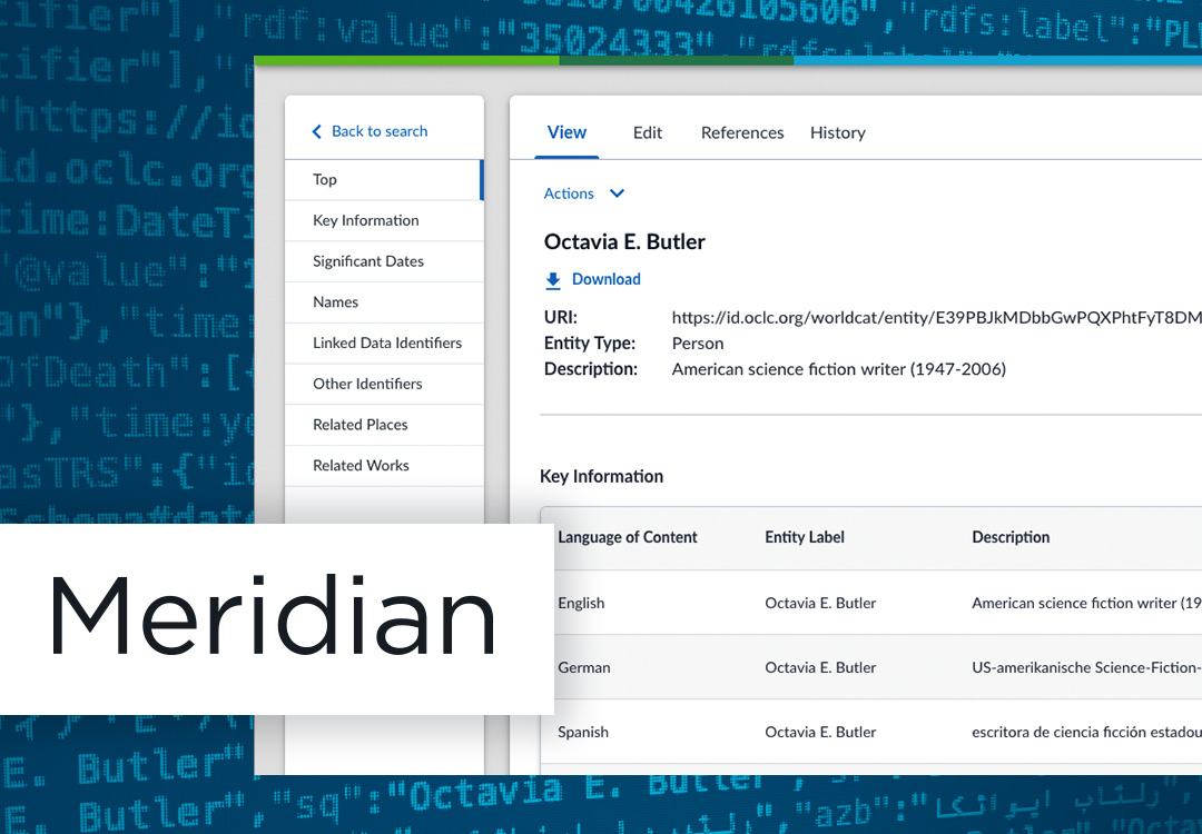 We launched OCLC Meridian®, a WorldCat Entities linked data management tool, and a suite of APIs that enable entities creation when and where needed.