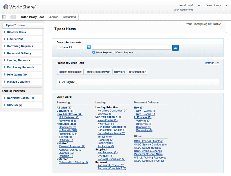 "Tipasa ha mejorado el flujo de trabajo entre el personal de la biblioteca, permitiéndonos incluir a más miembros del personal en el proceso de préstamo interbibliotecario. El uso del etiquetado personalizable y las notas del personal han mejorado la comunicación. Este es nuestro primer sistema de administración de préstamos interbibliotecarios, y nuestros usuarios están contentos con la nueva capacidad de gestionar sus solicitudes".