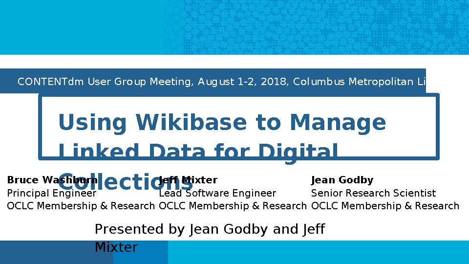 OCLC is working with several member institutions on an experimental project to evaluate Wikibase as part of a new linked data ecosystem. This presentation given by Jean Godby summarizes the work in progress, provides demonstrations of a pilot system, and offers a discussion of the implications with those managing digital collections.