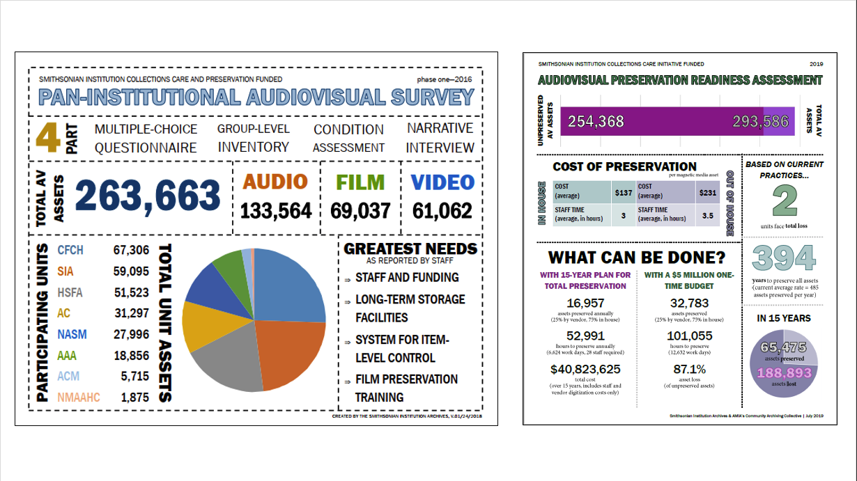 This webinar explains how data from a four-year project to survey and assess audiovisual collections across the Smithsonian Institution is being used to advance the preservation of those materials on a pan-institutional level.