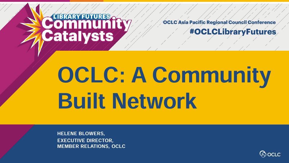 Helene Blowers, Director, Membership, explains how OCLC uses the power of collaboration to scale learning, scale innovation, and scale capacity, through a library network that allows libraries to collaborate at scale to achieve efficiencies and impact.